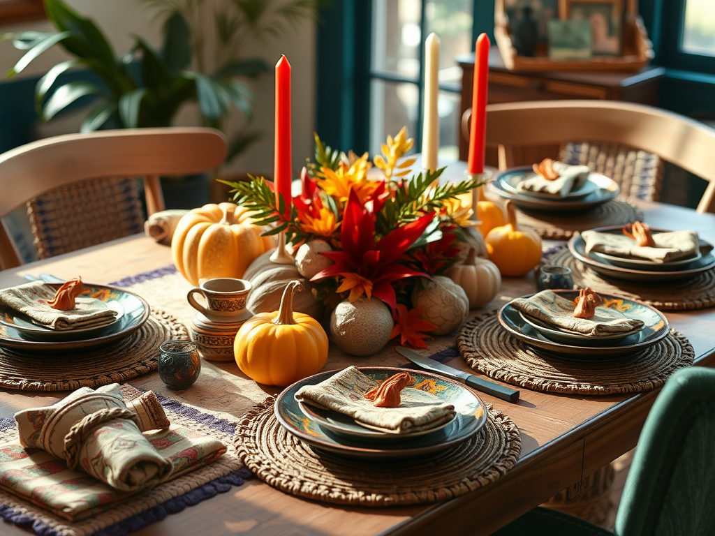 4. Bold Boho Thanksgiving Tablescape